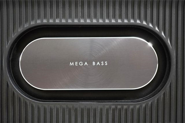 机身背面一眼望去,最显眼的可能就是可视化低音贝浮(MEGA BASS)和右侧的一排接口了。