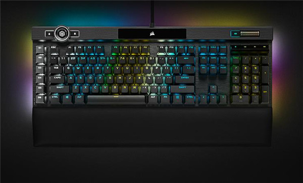 ️推荐理由:作为旗舰键盘,海盗船K100基本是什么都有了。右手金属音量滚轮,左手多功能拨轮,自带掌托,一排6个宏按键,以及自研的光轴,都可谓个性满满。