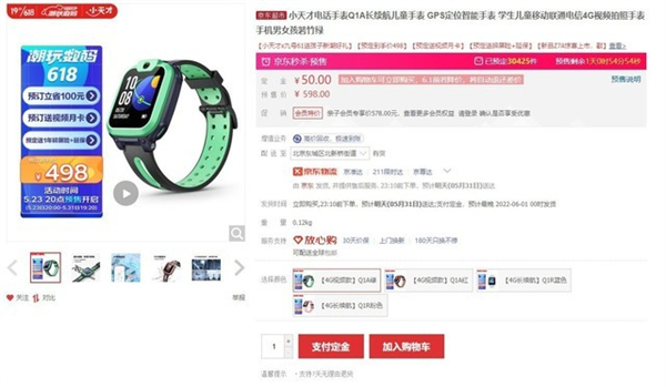 小天才电话手表Q1A作为一款定位入门款的儿童手表,基本该有的定位、通话、移动支付、IPX8防水等功能都集于一身,日常佩戴使用也是足够使用的,而且价格也相对比较亲民,京东报价598元,现在618预售期间,支付50预定金,最终到手价为498元,可以说入手毫无压力。
