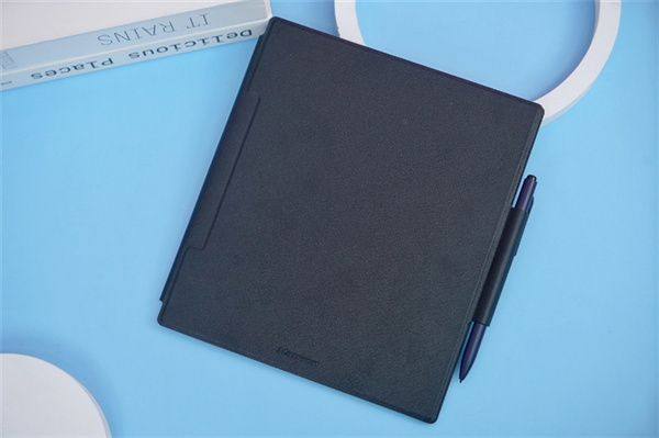 汉王手写电纸本N10风格偏向商务,本体自带皮套为屏幕提供了保障,避免了在使用过程中出现刮伤。保护套还有笔套,在不使用的时候可以放置这里。
