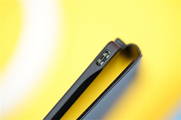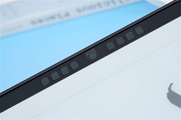 电源键/屏幕熄屏唤醒键在底部左侧。该键未采用凸起设置,应该是考虑用户读写过程中容易误触,因此将按键设计为内嵌式与机身齐平。