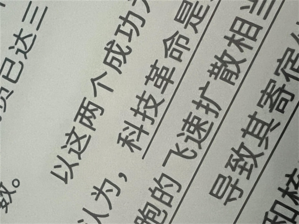 因为没有发光面板,显示效果看起来就等同纸质书一样,在读书App、PDF中都能针对文章标注划重点、标注等。
