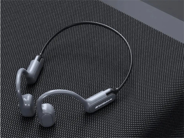 山水TG23骨传导耳机的整体外观不错,前端为灰色后端为黑色的结合,颜色上面显得比较有质感。使用了全钛合金骨架的材质,表面覆盖弹性硅胶,在佩戴上比较柔软舒适。只不过音量上稍微开大会震的外耳发麻、开到最大音量像公放一样,并且在吵闹的环境需要配合耳塞一起使用才能听到耳机声音。比较小巧的山水TG23骨传导耳机在外形上头围小的比较适合,如果是头围大点的话,后面黑色的耳机杠会微微勒到脑部。