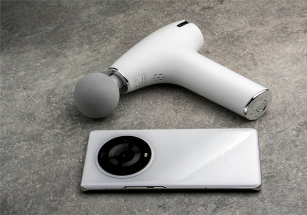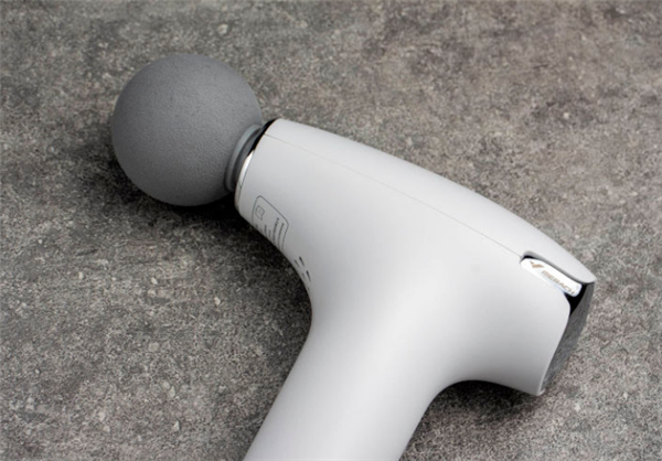 和绝大部分筋膜枪的结构类似,麦瑞克这款筋膜枪也是采用手柄、枪体和按摩头的构成,但整体的外形并没有呈完全的90°垂直造型,而是根据人体工学,手柄和枪体略大于90°的角度设计,使用时更利于掌握触按点位的控制和筋膜枪的稳定性,机身整体采用流线型外观,过渡处流畅圆润,浑然天成,因此这款筋膜枪还申请了外观专利。