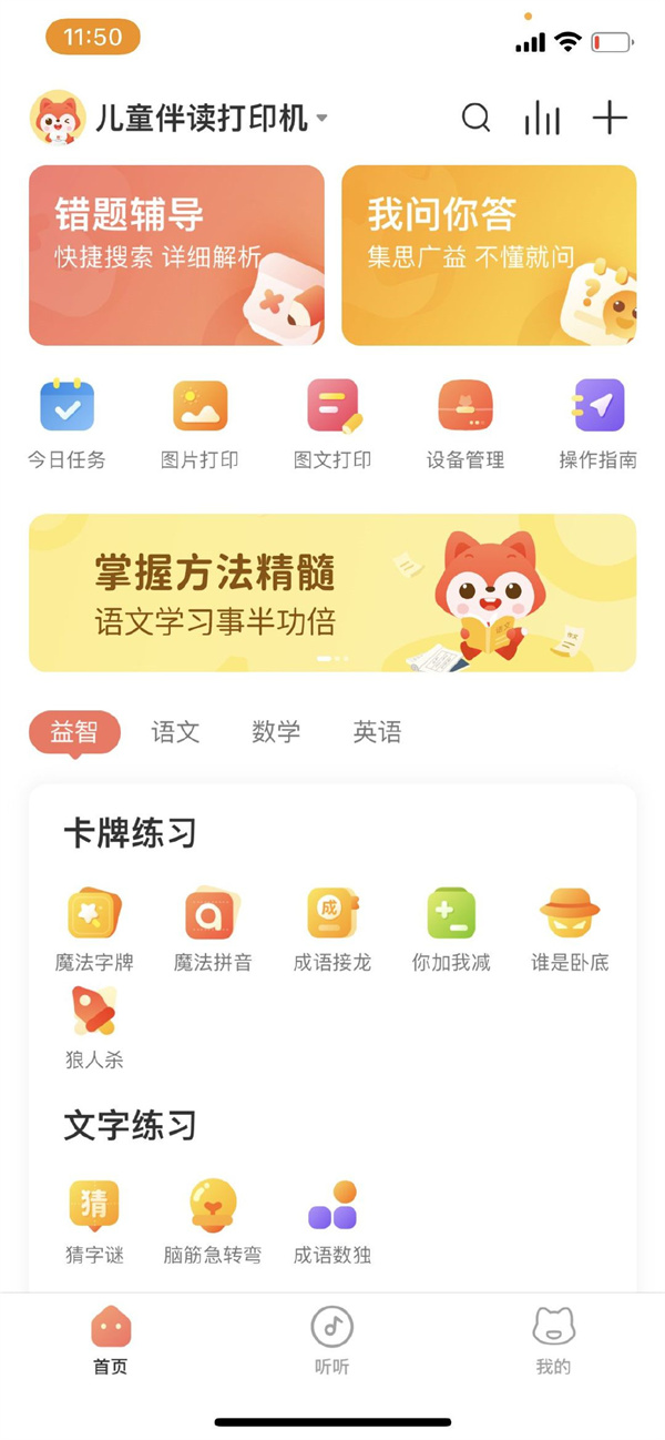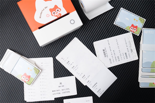 虽然很迷你,但是功能非常强大的。孩子首先捣鼓玩的是益智卡打印,啥意思呢?就是这个小东西有个对应的软件APP,里面的内容非常丰富。