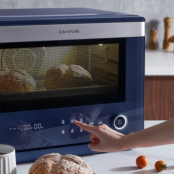 宜盾普微蒸烤箱内胆容量32L,三层烤架的设计也完全不会拥挤,因为有蒸的功能,所以蒸盘替代了烤网,带孔的用来蒸/蒸烤都非常合适,不会影响蒸汽也不会积水;烤网可以用来烤肉或者烘焙的时候用作烤架,不影响底面加热;烤盘就是万金油啦,可以用来烤肉烤饼干做泡芙,也可以做面包卷,都非常实用。