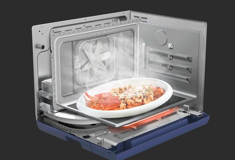 宜盾普微蒸烤一体机搭配原装进口TOSHIBA品牌磁控管,配合微波均衡温控专利技术,可以做到温场均匀热能高效,而且还真的是全程低噪运行,100~1000W十档变频就让它的可用性高了不少,高效方便还省电,变频微波+多维蒸汽能够让蒸汽从外部迅速包裹食材,微波从内部快速加热食物,复热速度更快,而且老式微波炉会出现的面包馒头加热之后口感很差的问题,宜盾普也完全没有。