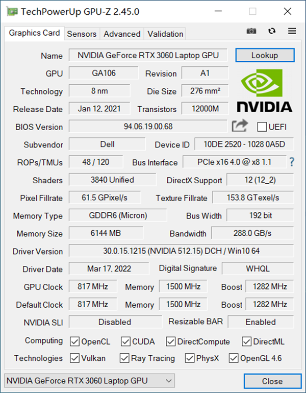 首先在硬件上,RTX 3060 笔记本电脑 GPU 就足够强大,RTX 3060 笔记本电脑 GPU 采用 NVIDIA Ampere 架构,显存采用 6GB GDDR6.最大 130W 功耗设计,支持 Dynamic Boost 2.0 动态增强,可以获得至多 140W 的性能释放。由于 RTX 3060 笔记本电脑 GPU 使用了第 2 代 RT Core、3840 个流处理器以及第 3 代 Tensor Cores,因此可以更加快速高效运行 AI 驱动技术。
