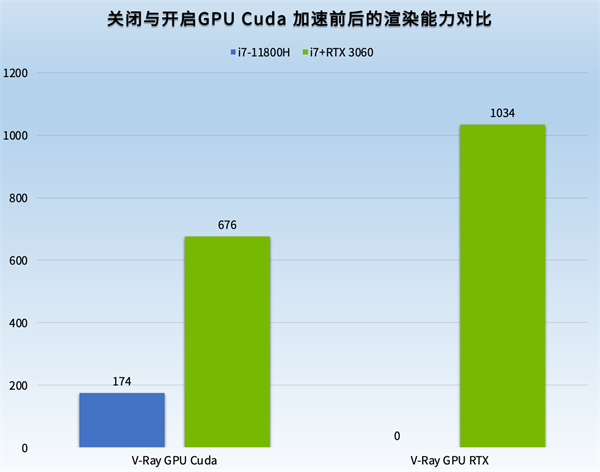 在另一款常用的建模工具 V-Ray 中,如果单用 i7-11800H 跑的话,只有 170 几分,很难流畅建模。