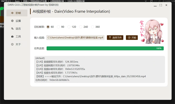 还有一款最近在使用的开源 AI 视频补帧软件,软件的作者也推荐大家使用 NVIDIA GeForce RTX 30 系列笔记本电脑 GPU,同样的视频,其它用 CPU 硬算可能需要一整天,而通过笔者的 RTX 3060 笔记本电脑 GPU 仅需 1 个小时就可以完成补帧。
