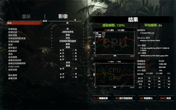 在 3A 大作 BenchMark 典范《古墓丽影: 暗影》中,XPS17 可以达到平均 84 帧,畅玩 3A 不在话下。