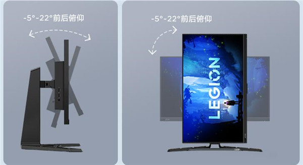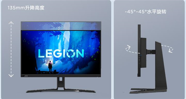 拯救者Y25采用了人体工学理念,支架具备升降、俯仰、水平和垂直旋转功能,可以满足玩家对高度调节和不同角度的观看要求,随意调节合适的观看角度,避免姿势不当导致的肩颈酸痛情况。