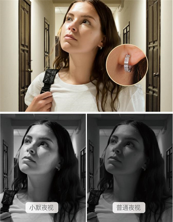 小默可视门铃的防晒帽檐下方是一个300万像素2K超清画质镜头,可以看清楚访客的容貌和细节,搭配第三代点阵式红外灯,我测试了一下,即使环境阴暗,差不多10米距离也是看得非常清楚的。