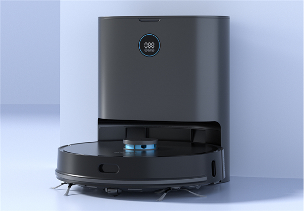 清易扫地机器人H40 Plus是吸拖一体,左右各一个边刷,底部是拖地模块,滚刷的尺寸比较适中。在硬件方面,3200Pa的吸力,5200mAh的电池,属于当下的主流水平。清易的集尘站中有一个3L容量的尘袋,当机器和集尘站连接之后,内部会形成负压,将机器内的垃圾吸入到集尘站中。