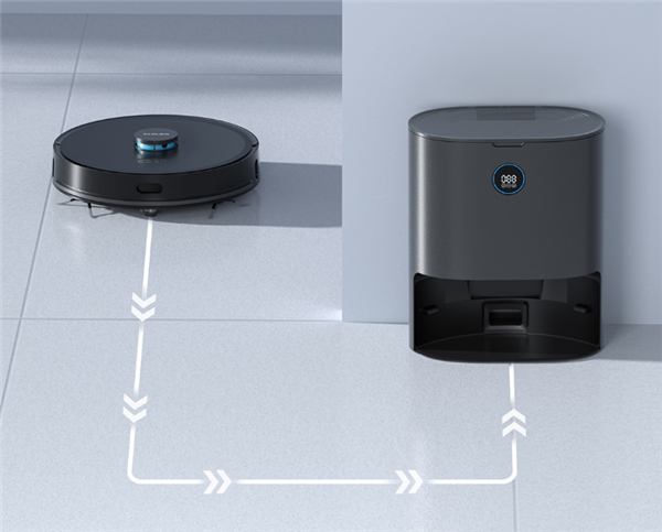 完成清扫任务后,会自行返回充电座,入位之后,机器会自动进行集尘。每次耗时大概是12秒左右,机器内的垃圾通过风道会被集中在集尘桶内。扫地机内的垃圾,现在都被收集在了集尘袋内。3L的大容量集尘袋,两个月清理一次都没问题。