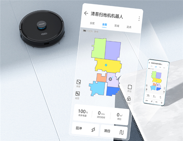 清易扫地机器人H40 Plus原生支持HarmonyOS手机万能卡片、NFC碰一碰。使用HarmonyOS手机的NFC功能,可以实现碰一碰连接操作,非常方便。手机贴近扫地机,系统就会自动弹出连接提示。你可以使用华为智慧生活APP(仅安卓)或者清易的App控制机器,兼顾便利性的同时,智能化做的也不错。