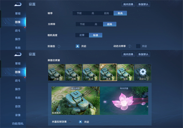 首先是《王者荣耀》,OPPO Reno8 Pro+目前已经开放了120帧模式支持,所以我们当然直接选择最高的高清+极高帧率(120FPS),并开启抗锯齿和水面反射效果。当然,确保手机满血状态发挥,我们也在游戏侧边栏中将性能调到了电竞模式,并同步打开了极限稳帧功能。