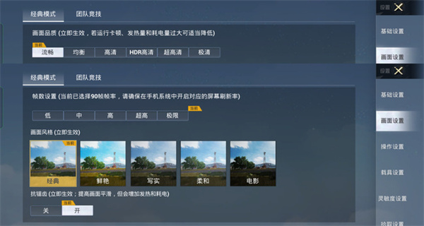 接下来是吃鸡手游《和平精英》,因为测试版本固件还没更新高帧模式支持,所以我们借助画质助手解锁了90帧模式,实际官方版本表现应该会比我们测试版本在稳定性方面要更好一些。