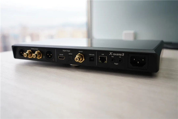 在机身设计上,X-SABRE 3搭配了一组2.4Ghz和5Ghz双频Wi-Fi天线及一块高清彩屏,可以全方位展示工作状态,流媒体模式下还可以展示曲目的封面信息。背面有着光纤、同轴、HDMI接口的I S;模拟输出方面,则是包含了RCA单端及XLR平衡、和Tigger接口,使用户可以通过此口连接其它设备,使其同步操作。