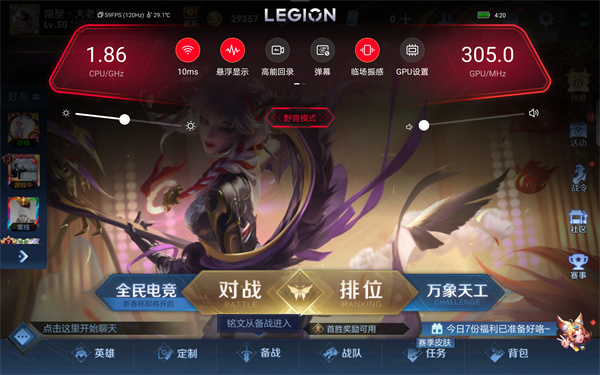 当然,如果你想进一步压榨平板的性能释放,在游戏时可以从顶部下滑调出拯救者游戏助手,将其调整时「野兽」模式。