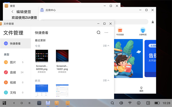 ZUI 13还内置了一视界功能,包括双屏显示、应用浮窗和自由分屏功能。平行视窗让同一个应用可以双屏显示,双窗口下也可以进行同时操作。多种分屏操作让玩家可以实现一心二用甚至一心多用,带来更丰富的平板玩法。