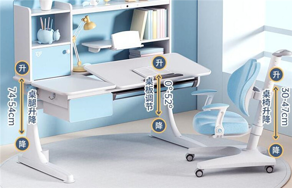 根据不同年龄阶段高度可调,从3岁用到18岁,都可使用。桌面高度54- 74cm可调,椅子高度30-47cm可调,满足孩子3-18岁的身高使用。