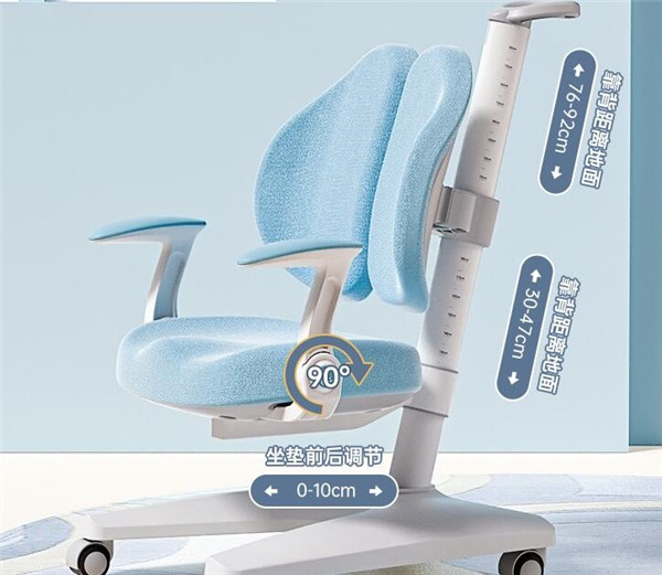 座椅,在设计时遵循人体工学,充分考虑了孩子的发育需求。双靠背可对孩子背部进行舒适支撑,0-45度左右侧转,能够有效分摊孩子的颈肩压力,减少孩子颈肩疲劳,0-65度上下侧转配合充电贴保护孩子腰椎。底部滑轮配备重力锁,受重时锁定,孩子学习不分心,起身后解锁,顺滑移动不伤地板。座位采用弹力乳胶坐垫,久坐不累。