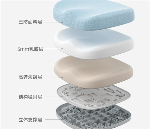 弹力乳胶坐垫,三防面料层,w型舒压椅垫,进口乳胶材质抑菌防螨,学习久了也不累。