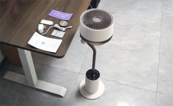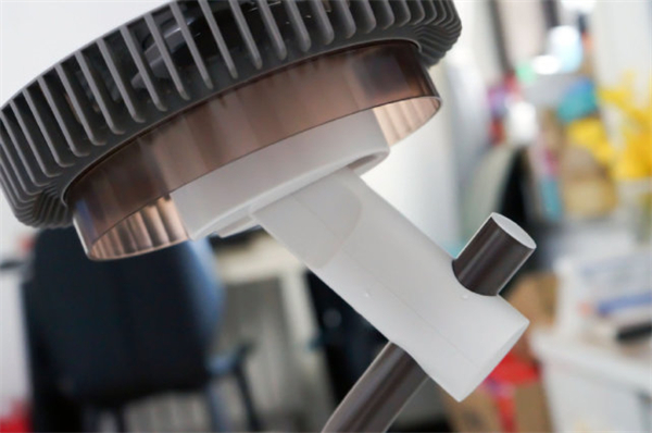 循环风扇往下,就是连接集成底座和风扇的旋转立柱,有意思的是大宇考虑到摇头送风的适用性和立体美观的观赏性,通过一种更圆润的方式连接,使得实用价值完整保留的同时整机的颜值、一体感也得到加强。