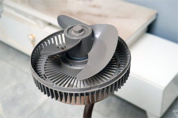 我们先看循环风扇扇面,外壳是做了定向塑风的导流罩;透过罩体可以看到内部仿照飞机涡轮设计的螺旋扇叶,最里面也是最核心的则是直流无刷电机,这也是大宇循环空气扇大风量的动力来源。