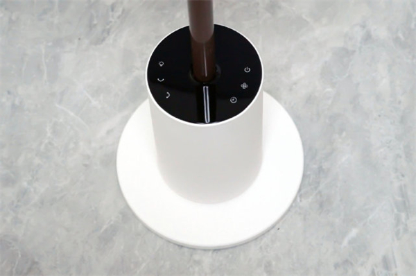 再往下就是大宇空气循环扇F30的集成底座,在底座的设计上,大宇在底部增加了接触面积,这样可以提升稳定性,在底座的上方则集成了可以触屏操作的显示面板。功能设计上,正中间的位置是一个多功能显示屏,主要是将各项操作可视化,比如风速、定时等;左边可以看到夜灯开关、左右摇头、上下摇头;右边则是电源开关、风速调节和定时设置。