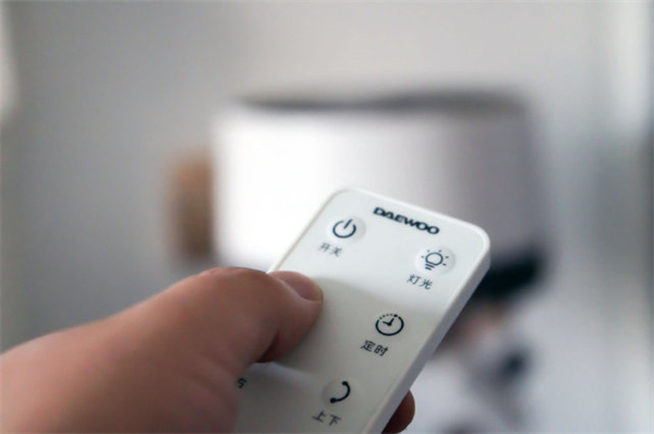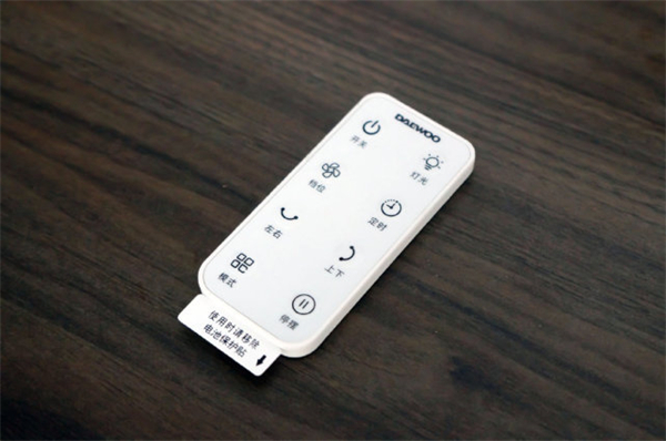 除了触屏操作,我们还可以通过遥控器操作。从遥控器的控制面板上,我们可以看到待机、灯光、档位、定时、左右、上下、模式和停摆八个功能。通过红外遥控器躺在沙发上就可以操作,用起来更加随心所欲。