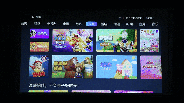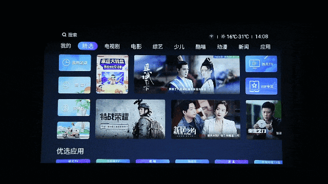 而在内容上,长虹Q3H智能投影整合了极为丰富的资源。腾讯极光深度整合,遥控器有专门的按键可以直接打开腾讯极光。同时其在主页分布了包括电影、电视剧、健身以及儿童等多种内容,一家老小都能找到自己喜欢看的。同时你还可以安装自己想要的APP,丰富的应用市场确保你找到想要的内容。