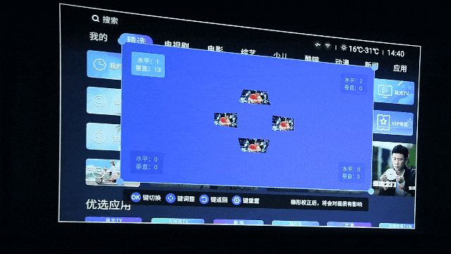 通过测试我们发现,长虹Q3H智能投影的调校功能还是很灵敏的。无论是开机自动对焦还是侧投,都可以很快调节到自己想要的画面,不用担心。