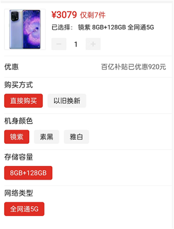 满打满算,Find X5系列也才上市3个月左右。这款手机上市的时候价格为3999元,现在拼夕夕已经举起了砍刀,直接杀到了3079元。近1000块钱的补贴,也是相当给力了。