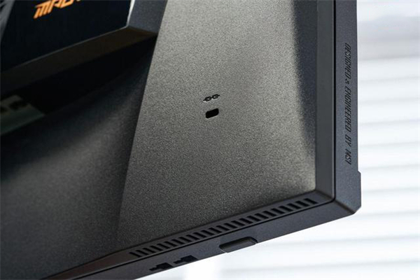 微星OPTIX MPG321UR-QD屏幕部分在底部靠近电源键,以及左边的部分各有两个小孔。它们的作用是让用户插上随显示器附带的理线夹之用。这个理线夹基本上就是为理顺鼠标线之用的,也算是一个比较实用的小设计。