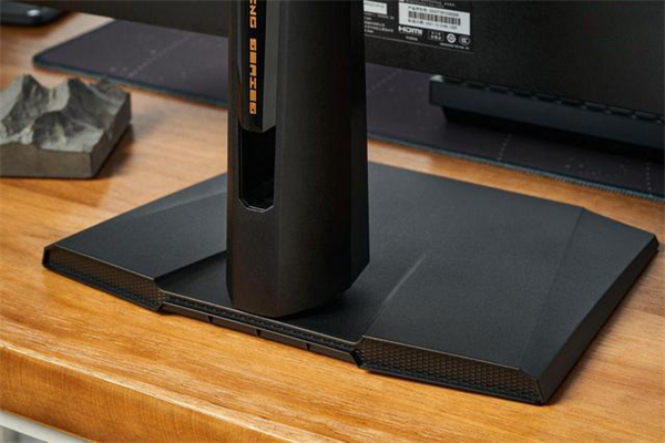 来到显示器支架,这里拥有一个水平开口的理线口,可以让玩家整理线材。对于理线口,笔者个人觉得如果是可以做成斜开口的会比较美观,因为这样就不会看到开口背口的那些东西,整体上会看上去会更加舒服。