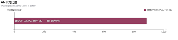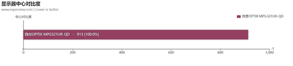 经过测试,微星OPTIX MPG321UR-QD的屏幕中心对比度为913:1.在IPS屏幕中算是中等的成绩了。