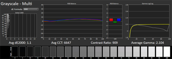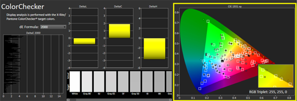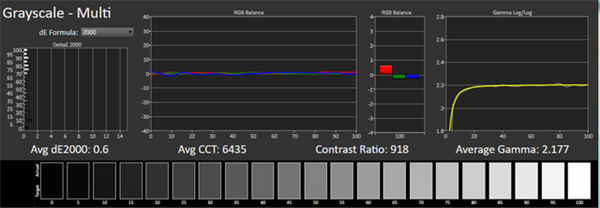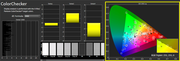 在这个环节中,笔者会先把显示器设成最接近100 cd/m2的亮度以及比较平衡的色温RGB值,再配以Calman的校色功能来调校显示器,而白平衡ΔE的目标则会设至0.5.