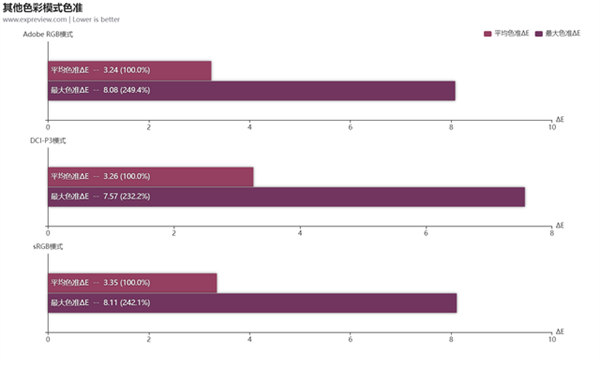 至于色准也是得到进一步的提升,Adobe RGB平均色准ΔE为2.34.最大为5.04.而色彩饱和度ΔE则是平均2.36最大5.08.