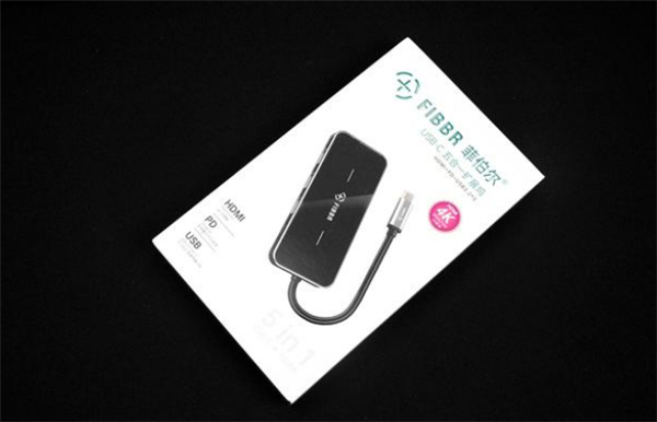 菲伯尔五合一扩展坞外包装主基调为白色,正面印有产品的渲染图和品牌、型号以及产品的卖点。