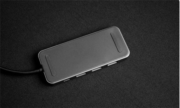 扩展坞为黑色,正面表面为透明亚克力材质,边框和底壳则采用了铝合金材质,整体颜值在线,跟轻薄本搭配起来相得益彰。而且金属材质更利于散热,避免在使用过程中因为过热导致卡顿现象。
