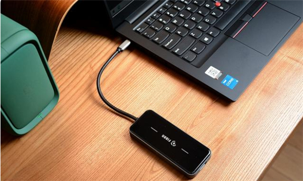 扩展坞的连接线长约150mm,采用USB-C接口(支持雷电3)设计,这种集成式设计,可以避免线材丢失的尴尬。