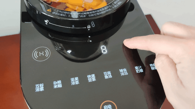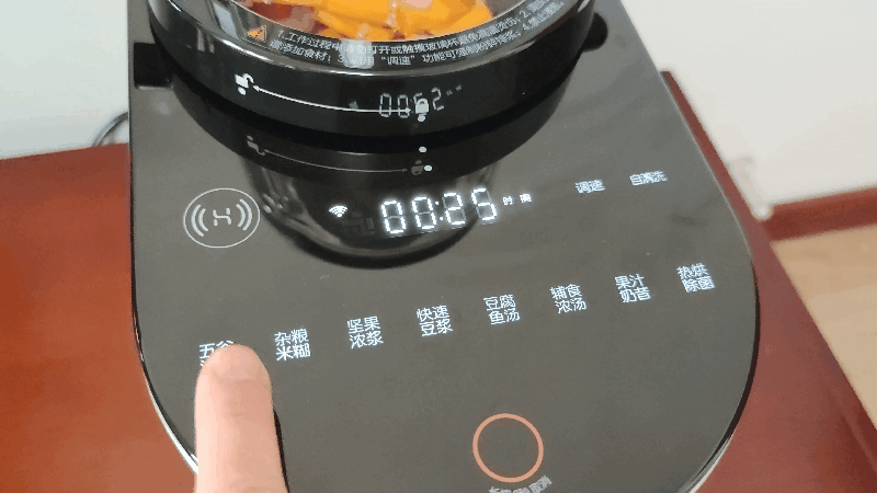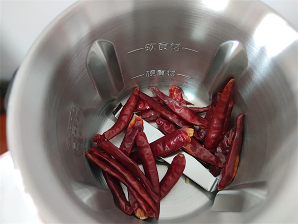 我们只需将干辣椒放入,然后选择一下模式这款破壁机就会自己启动。
