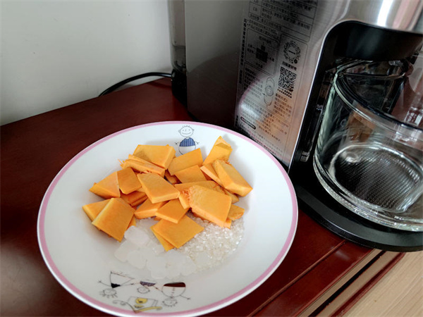 我打算做一个南瓜粥,首先我们先需要准备南瓜以及冰糖,当然也需要加一些谷物增加一下粥的粘稠度,所以我又加入了大米。