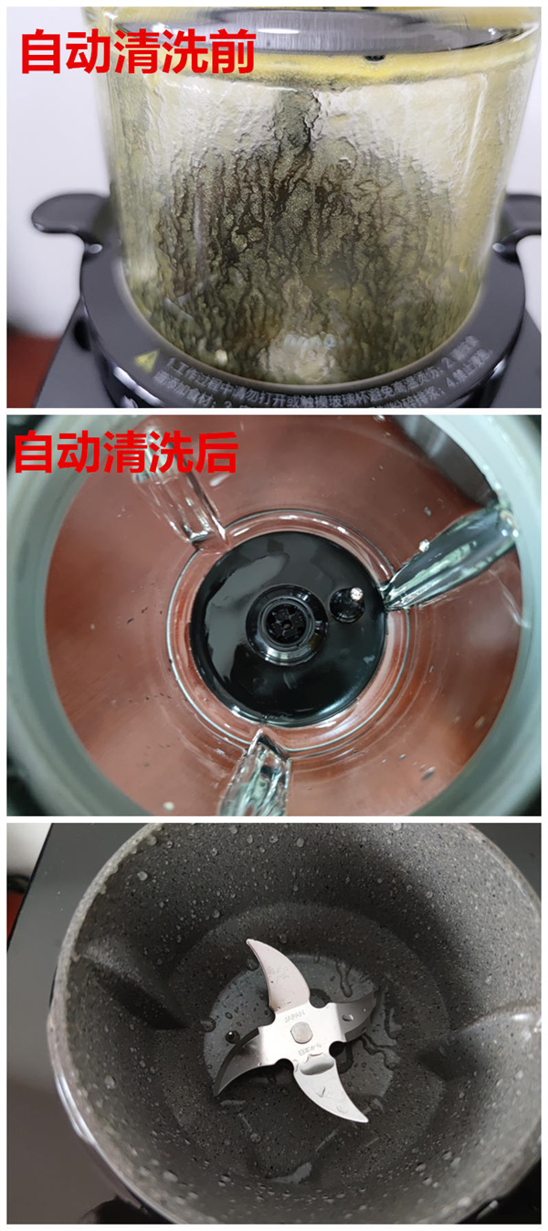 在制作完南瓜粥后,相信大家都能想象到搅拌杯有多么难刷,不过好在这款破壁机支持自动清洗,无需手刷就能轻松完成搅拌杯以及研磨杯体的清理,以下是我清洗前与清洗后的对比图,大家可以看下。