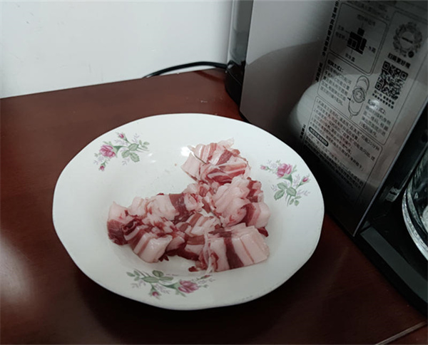 接下来我打算使用多功能杯来做一些肉馅,首先就是将大块的肉切成小块,这样有助于快速搅拌。