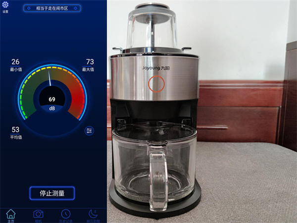 最后我还测试了一下噪音,从图中可以看到九阳不用手洗多功能破壁机Y951在运行过程中所发出的声音平均值为53分贝,在我看来53分贝我个人还是可以接受的,并且我测试的这个声音源自于干磨杯,如果只使用搅拌杯声音肯定还会小一些,所以我觉得运行声音这点还需要看具体做什么东西。