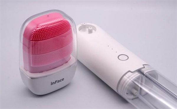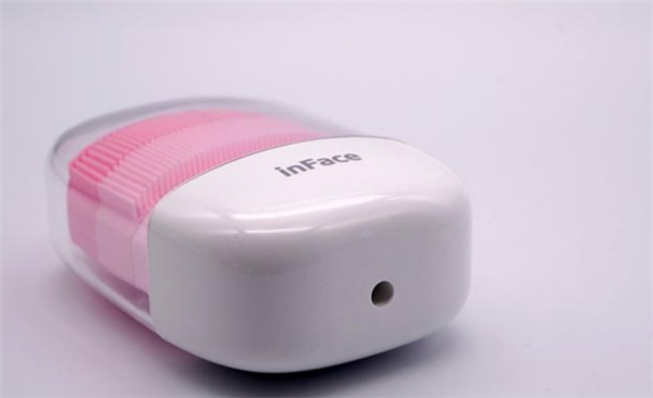 inFace声波洁面仪采用FDA认证的硅胶材质,整体尺寸80*53*30.4mm,甜蜜粉更显小巧可爱,重量仅有83g,带有专门存放的透明盒子,可以保证平时摆放稳固不落灰,出差或是旅行时放在包里也更加方便携带。