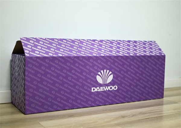 大宇的产品包装盒都非常有家族特色,紫色的底色上布满了大宇的logo,从小盒子到大盒子都是如此。